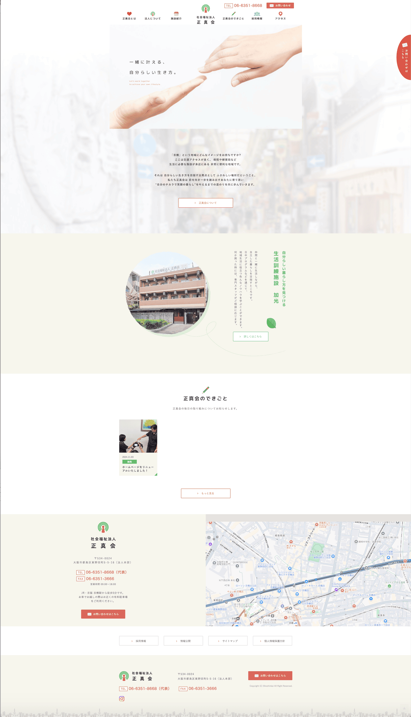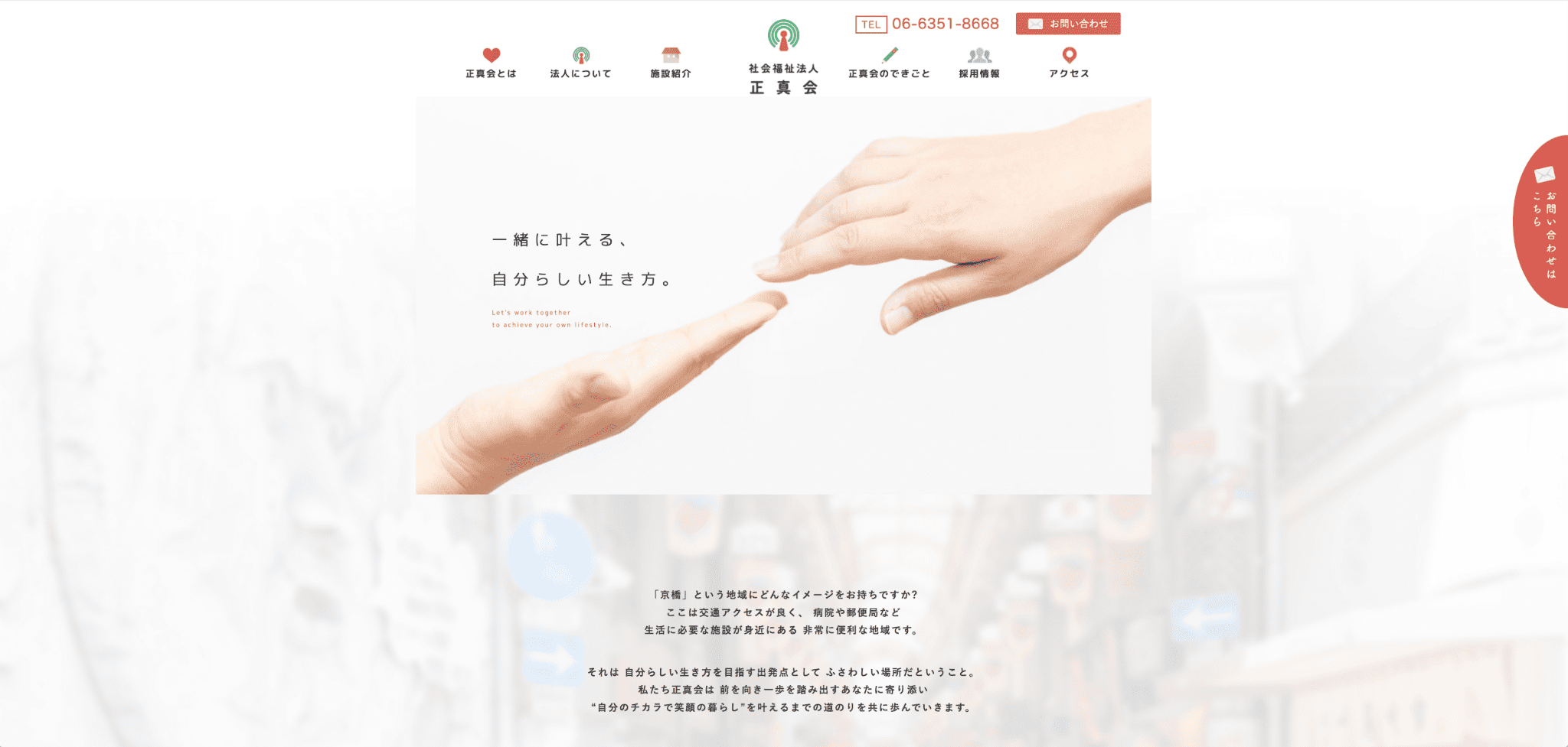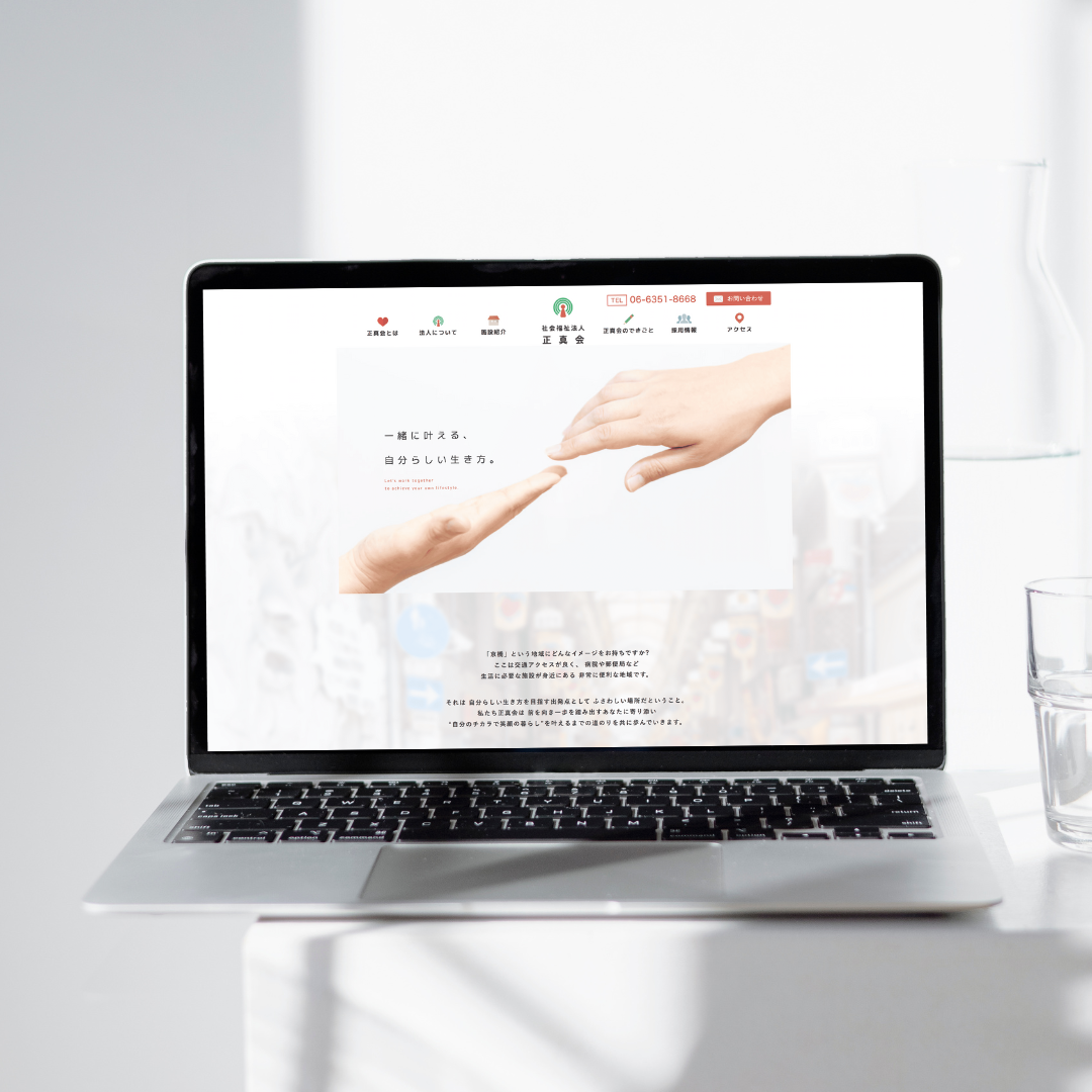 利用者さんが自立した生活ができるまで”一緒に伴走していこうね”といった正真会さんの優しさが感じられるTOPビジュアルに仕上げました。